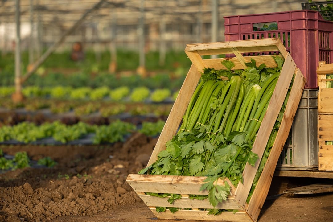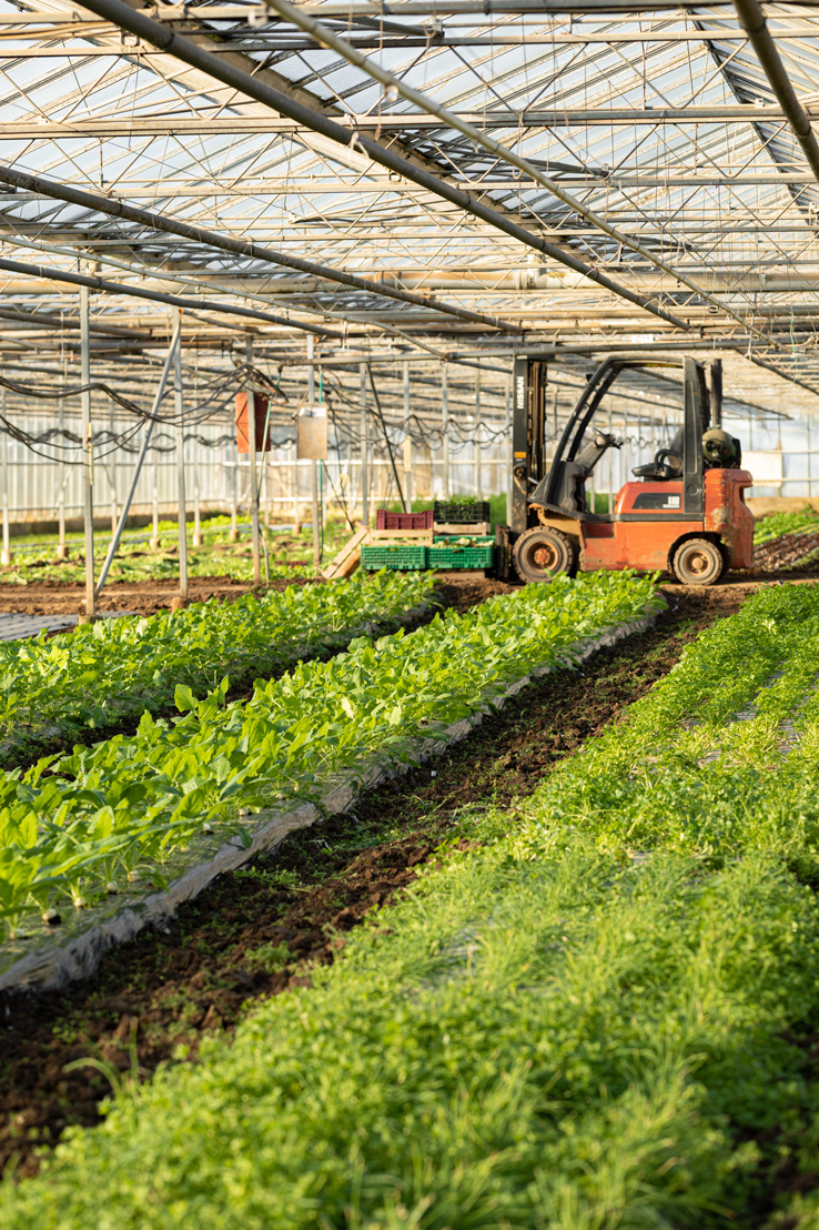 La plupart des fruits et légumes proposés sur notre boutique sont produits sur les terres situées derrière l'enseigne, et récoltés le matin même !